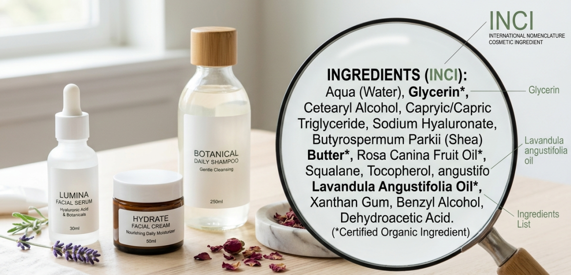 Con l’INCI, gli ingredienti dei cosmetici sono elencati utilizzando nomi scientifici internazionalmente riconosciuti, che consentono ai consumatori di identificare facilmente gli ingredienti e di confrontare i prodotti in modo più efficiente. Ad esempio, anziché utilizzare nomi commerciali o termini generici, come “olio essenziale di lavanda”, l’INCI richiede l’utilizzo del nome chimico corretto, come “Lavandula angustifolia oil”.